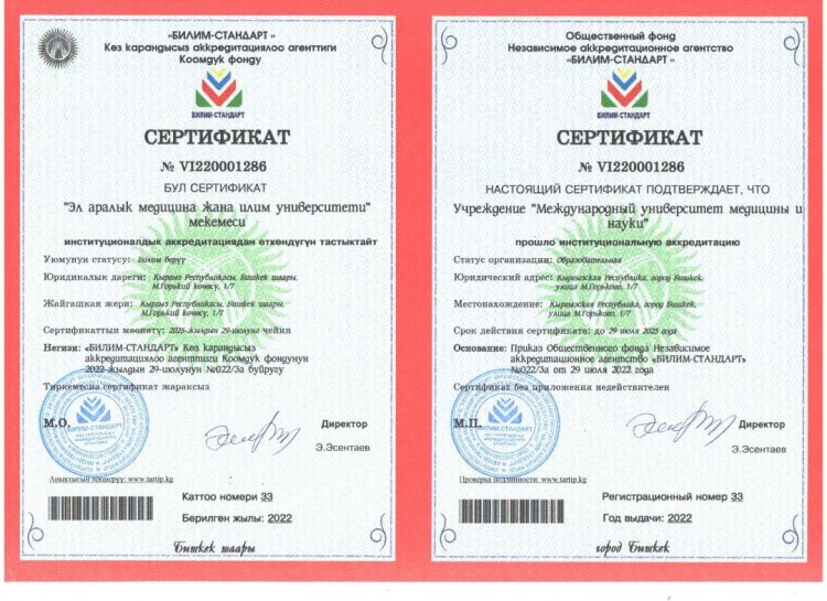 Certificate of the independent accreditation agency "Bilim Sapat"